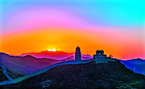 山勢險峻的雁門關,四季都有獨特的風景。春天,百花盛開,使得雄渾的長城燦爛奪目;夏天,色彩斑斕,背靠翠綠的山林,呈現(xiàn)生機勃勃的景象;秋天,丹楓如火,由綠轉黃,由黃轉紅,如詩如畫,美不勝收;冬天,長城被雪花覆蓋,顯得更加滄桑,猶如童話世界般靜謐而誘人。