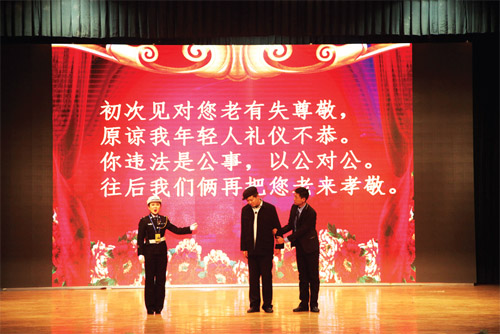1月27日至29日,偏關(guān)縣公安局交警大隊(duì)交通安全文藝宣傳隊(duì)在隊(duì)長(zhǎng)們的帶領(lǐng)下,先后走進(jìn)市實(shí)驗(yàn)中學(xué)、市客運(yùn)中心、國(guó)家電網(wǎng)忻州供電分公司進(jìn)行了三場(chǎng)演出,用自編自導(dǎo)自演、群眾喜聞樂(lè)見(jiàn)的“漫翰調(diào)”、“二人臺(tái)”、北路梆子、民歌等一系列極具地域文化特色的地方小戲、說(shuō)唱歌舞等曲藝形式進(jìn)行宣傳演出,贏得滿堂喝彩,場(chǎng)場(chǎng)掌聲雷動(dòng)。作為春節(jié)回家路上的一道文化盛宴,這次春節(jié)前的平安出行警示教育“送安全下鄉(xiāng)”巡演是我市公安交警精心策劃、編排的春運(yùn)交通安全宣傳行動(dòng)之一。28日,市客運(yùn)中心人頭攢動(dòng),熙熙攘攘,大廳外懸掛的橫幅標(biāo)語(yǔ)“守護(hù)您的平安出行,保障道路安全暢通是每一位交警的神圣職責(zé)!”格外醒目。候車大廳里,暖意融融,市公安局交警支隊(duì)組織的春運(yùn)交通安全文藝演出正在進(jìn)行,交警版的民間小調(diào)《拜大年》、小品《警鐘聲聲》、雙簧《二愣子》等節(jié)目令人賞心悅目、捧腹不止。在歡笑之余,提醒和教育廣大群眾自覺(jué)抵制不文明、不安全交通行為,觀看演出的旅客和客車司機(jī)紛紛感慨,這樣的宣傳教育生動(dòng)形象,人人愛(ài)看且耐人尋味,警示作用很大。
