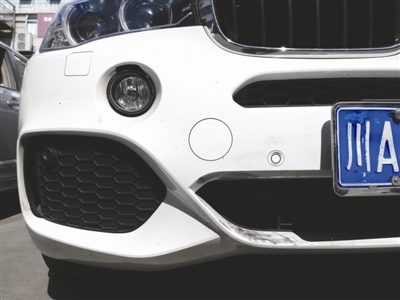 寶馬車上發(fā)現(xiàn)可疑裝置的位置——車頭前右側(cè)進氣口