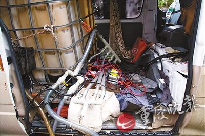 經(jīng)審訊,嫌疑人陳某曾因盜竊柴油被判入獄,在獄中認(rèn)識(shí)張某、張某某。3人出獄后,在瀘州買了一輛二手福田面包車,經(jīng)過精心改裝并換上假牌照,往返于川渝兩地,在G93渝瀘高速各服務(wù)區(qū)專門盜竊貨車油箱里的柴油。偷油設(shè)備自動(dòng)化,改裝車內(nèi)裝著好幾個(gè)大油桶,用一根塑料管,通過一個(gè)油泵,把貨車油箱里的油直接抽到桶里。油泵電源由蓄電池提供,為避免發(fā)動(dòng)機(jī)聲音過大,油泵還用舊衣服層層包裹。馬力大的油泵,1分鐘就能把貨車滿滿一箱油抽光。為了更快抽油,嫌疑人甚至并聯(lián)4個(gè)大油泵。與以往拿著吸油管的小賊比,這樣的裝備偷油速度快10倍,比加油速度快幾倍。6月以來,該團(tuán)伙僅在江津范圍內(nèi)就瘋狂作案20余起,盜得柴油5000余升,涉案金額數(shù)萬(wàn)元。陳某落網(wǎng)當(dāng)天,警方在面包車上查獲的1000余升柴油是陳某獨(dú)自在珞璜服務(wù)區(qū)連續(xù)作案5起盜得。