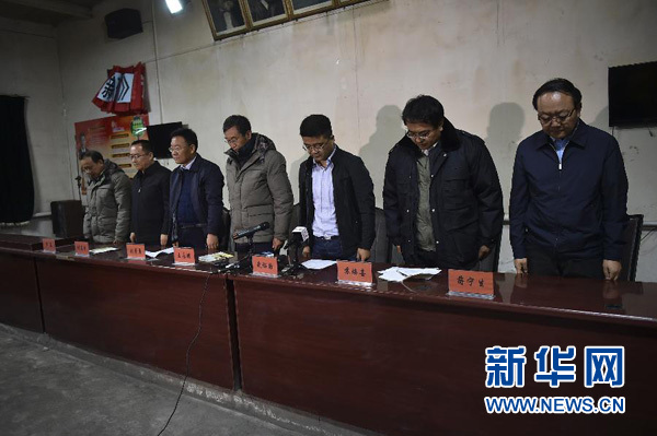 9月28日,參加新聞發(fā)布會的工作人員在向遇難者默哀。 27日早晨,寧夏石嘴山市寧夏林利煤炭有限公司煤礦三號井發(fā)生瓦斯爆炸事故,截至27日22時30分,事故已造成18人遇難,另有2人下落不明。目前救援仍在緊張進行中。新華社記者王鵬攝