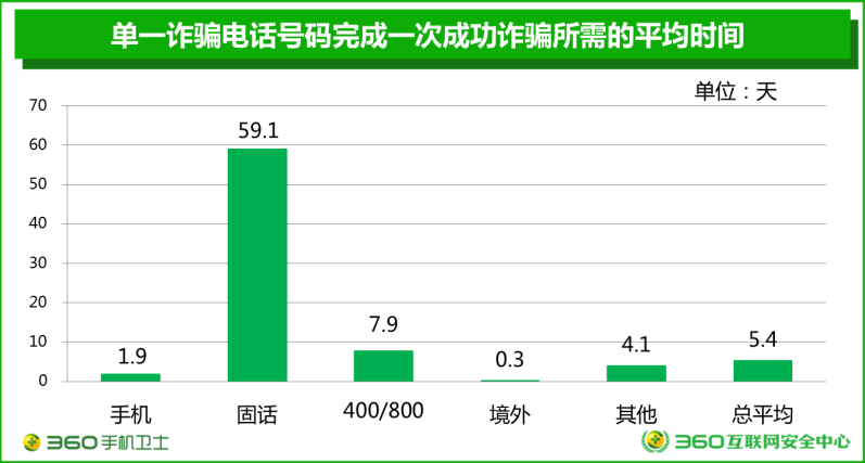 生活中,每個人都或多或少地接到過詐騙電話。從工作日到假期,從早到晚,犯罪分子們都在挖空心思編造各種騙局。很多人好奇詐騙分子每天這么“勤奮”,到底成功率有多高呢?10月27日,360發(fā)布的《2016詐騙電話活動規(guī)律與行為特征分析報告》對這一問題進(jìn)行了深入的研究?!秷蟾妗凤@示,平均約每5.4天,犯罪分子就能夠使用一個電話號碼完成一次成功或接近成功的詐騙。