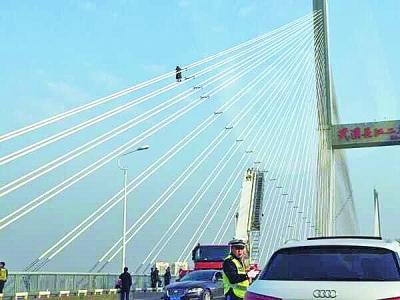據(jù)武漢晚報13日報道,12日下午1點半,一名六旬男子爬上湖北武漢長江二橋斜拉索,離橋面約30米,聲稱要跳橋。民警、消防趕到現(xiàn)場救援,僵持一個小時后,消防出動云梯施救,方才將輕生男子救下接回橋面。這起事故導致二橋和漢口、武昌多處道路交通擁堵近3個小時,直至昨天下午5點,交通才恢復正常。