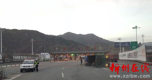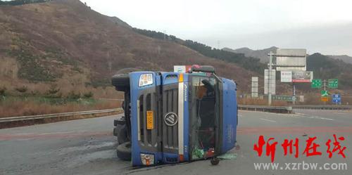 2016年11月19日17時(shí)00分許,山西交警高速二支隊(duì)九大隊(duì)民警翟躍、郭騏源接到報(bào)警稱:在五保高速12km(五臺(tái)山景區(qū)收費(fèi)站內(nèi)廣場(chǎng))處,有一輛藍(lán)色歐曼牌重型半掛貨車因操作不當(dāng),將掛車內(nèi)裝的鋼棒側(cè)滑,導(dǎo)致車輛側(cè)翻,造成車輛及路產(chǎn)不同程度損壞的道路交通事故。大隊(duì)民警第一時(shí)間趕赴現(xiàn)場(chǎng),及時(shí)詢問當(dāng)事人是否受傷,是否需要撥打“120”急救,并了解了當(dāng)時(shí)的事發(fā)情況。當(dāng)事人稱:“自己一個(gè)人開車回定襄,為省過路費(fèi),想著從五臺(tái)山景區(qū)高速口下,繞行低速回定襄,由于在下匝道時(shí),打方向過急,車速較快,將車上所拉的鋼棒側(cè)滑,造成車輛的側(cè)翻,所幸人沒有受傷?!敝?,民警對(duì)現(xiàn)場(chǎng)進(jìn)行勘查,并調(diào)取監(jiān)控視頻,發(fā)現(xiàn)車輛在轉(zhuǎn)彎時(shí),車速較快,駕駛員操作不當(dāng)是造成事故發(fā)生的原因。