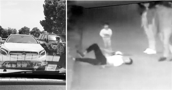 “沒想到,那女的二話不說,沖上來就很重地推了我一把。我想還手,又覺得不合適,就開始拿出手機(jī)來錄像取證,才錄了八九秒鐘,就有人過來把手機(jī)打掉了,中間還聽到他們家的小孩也在罵我。緊接著那男的就沖上來了,說了一句大致意思是‘你小毛頭一個(gè),我一下就把你拎起來’,感覺他話沒說完,我就被他抓起來扔到地上了?!?/p>