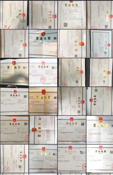 有商家向記者展示自己擁有的營業(yè)執(zhí)照,這些公司均可在招聘網站注冊賬號,每個售價在120元-330元。受訪者供圖