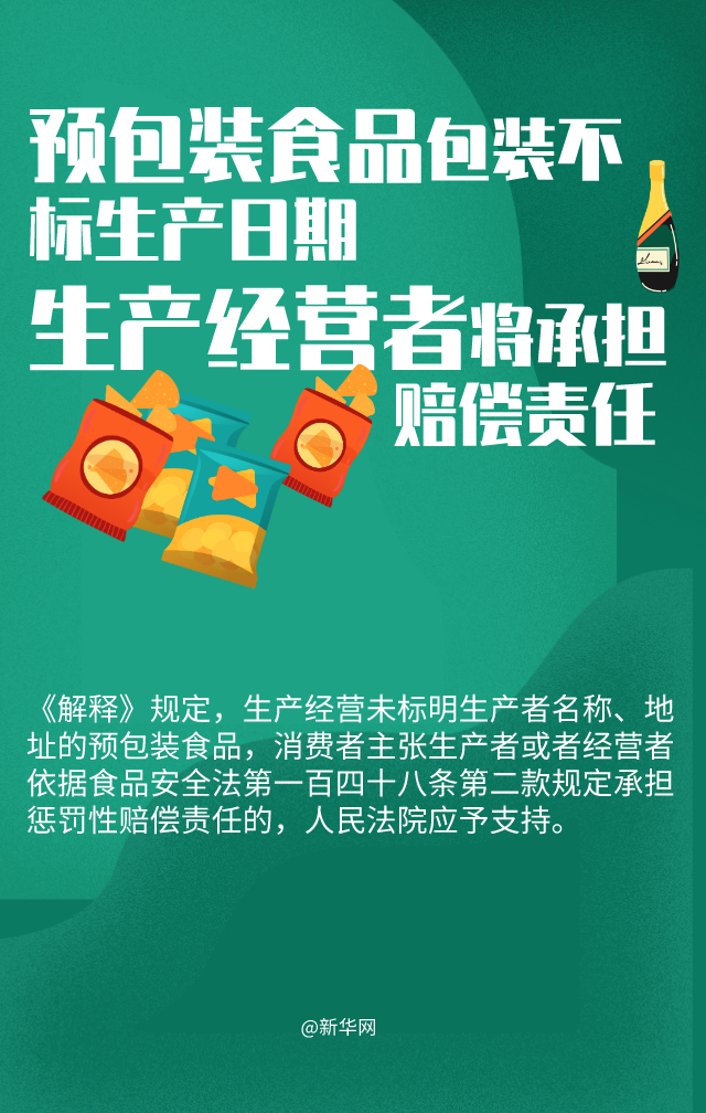 預(yù)包裝食品包裝不標(biāo)生產(chǎn)日期,生產(chǎn)經(jīng)營者將承擔(dān)賠償責(zé)任 根據(jù)食品安全法、食品安全國家標(biāo)準(zhǔn)的有關(guān)規(guī)定,生產(chǎn)日期和保質(zhì)期是預(yù)包裝食品包裝標(biāo)簽強(qiáng)制標(biāo)識的信息,這也是消費(fèi)者在購買食品時(shí)最為關(guān)注的食品安全信息。目前,實(shí)踐中主要存在兩方面問題: 一是預(yù)包裝食品包裝標(biāo)簽上缺少生產(chǎn)日期和保質(zhì)期信息。這種情況下,消費(fèi)者無法對食品安全作出判斷,生產(chǎn)經(jīng)營者向消費(fèi)者出售的食品很可能是過期食品,損害消費(fèi)者身體健康、生命安全。二是預(yù)包裝食品包裝標(biāo)簽上雖然標(biāo)明了生產(chǎn)日期和保質(zhì)期信息,但是標(biāo)注不清晰、不醒目,讓消費(fèi)者找不到、看不清、弄不明,失去了預(yù)包裝食品包裝標(biāo)簽本身的意義。 針對上述情況,《解釋》規(guī)定,生產(chǎn)經(jīng)營未清晰標(biāo)明生產(chǎn)日期、保質(zhì)期的預(yù)包裝食品,消費(fèi)者主張生產(chǎn)者或者經(jīng)營者依據(jù)食品安全法第148條第2款規(guī)定承擔(dān)懲罰性賠償責(zé)任的,人民法院應(yīng)予支持。因此,生產(chǎn)經(jīng)營的預(yù)包裝食品包裝標(biāo)簽未標(biāo)明生產(chǎn)日期、保質(zhì)期,或者標(biāo)明的生產(chǎn)日期、保質(zhì)期不清晰,生產(chǎn)經(jīng)營者都將承擔(dān)懲罰性賠償責(zé)任,以充分保護(hù)消費(fèi)者的知情權(quán)和生命健康。 (責(zé)任編輯:蔡文斌) |