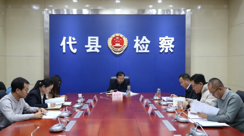近日,代縣檢察院召開黨組會(huì)專題研究部署黨風(fēng)廉政建設(shè)工作,院黨組書記、檢察長(zhǎng)席曉明主持會(huì)議并講話。