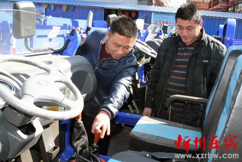 2月20日,原平市子干村的農(nóng)民正在農(nóng)機(jī)銷售處挑選時(shí)風(fēng)農(nóng)用車,春節(jié)過后,該市農(nóng)機(jī)市場(chǎng)紅紅火火,農(nóng)民們?cè)鐐涓?,為今年的春耕生產(chǎn)打下良好基礎(chǔ)。(趙春曉 攝)