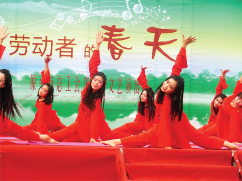 為慶祝即將到來的五一國際勞動節(jié),原平市總工會于近日組織各基層工會的群眾演員赴原平市經濟技術開發(fā)區(qū),給奮戰(zhàn)在一線的工人師傅送去了精彩的文藝節(jié)目。圖為演出現場。(賈政卿 攝)