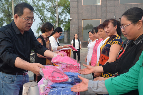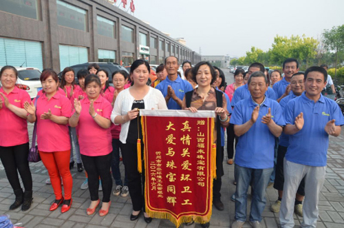 山西福來珠寶有限公司是由經(jīng)營中高端珠寶首飾,鉆石鑲嵌產(chǎn)品,是集采購、設(shè)計(jì)、鑲嵌、連鎖零售為一體的珠寶公司。為回饋社會(huì),弘揚(yáng)正氣,特意組織回T裇衫捐贈(zèng)環(huán)衛(wèi)工人。并對衣服進(jìn)行二次加工增加反光條,以適應(yīng)環(huán)衛(wèi)工人工作需要,代表山西福來珠寶有限公司進(jìn)行捐贈(zèng)的趙曉平總經(jīng)理深情地說:1300件T恤只是表達(dá)了福來珠寶全體員工對環(huán)衛(wèi)工人的崇高問候!忻州市民感謝環(huán)衛(wèi)工人的默默付出,用我們的行動(dòng)倡議各屆人士關(guān)愛環(huán)衛(wèi)工人、愛護(hù)環(huán)境衛(wèi)生,為城市建設(shè)出一份力量!今天看到一張張純樸的臉,真的是深有感觸,勞動(dòng)人民是那么知足和真摯!真的很開心,幫助別人是快樂的!撐著滿滿的愛,抬手灑向每個(gè)人,不需要左顧右盼,真好?。ü鶆Q)