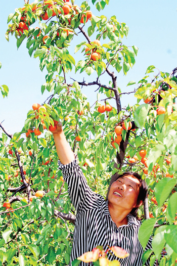 6月15日,原平市新華街村農(nóng)民正在自家杏園采摘,準(zhǔn)備銷往市場(chǎng)。原平市大力發(fā)展一村一品水果種植業(yè),促進(jìn)了農(nóng)民增收。(趙月仁 攝)