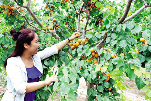 6 月22 日,在原平市子干鄉(xiāng)停旨頭村栗文田經(jīng)營的“農(nóng)家樂”采摘園中,游客正在采摘剛剛成熟的大黃杏。近年來,原平市大力發(fā)展觀光農(nóng)業(yè),促進農(nóng)民增收致富,今年黃杏、油桃、酥梨、駿棗又獲豐收,迎來一批批游客。(曹申義 攝)