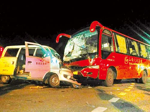 本報(bào)訊 7月10日22時(shí)20分左右,在忻州城區(qū)慕山橋北端的十字路口,一輛城際客運(yùn)汽車與一輛面包車相撞,客運(yùn)汽車前擋風(fēng)玻璃粉碎毀損,面包車前部嚴(yán)重變形,面包車上的傷者被隨后趕到的救護(hù)車送往醫(yī)院搶救,交警接警后也在第一時(shí)間趕赴現(xiàn)場(chǎng)調(diào)查事故原因、處理毀損車輛。