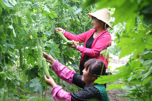 7月16日,原平市新原鄉(xiāng)解放街村菜農(nóng)管仲衛(wèi)蔬菜種植基地,員工們正在采摘長(zhǎng)勢(shì)喜人的苦瓜,老管種植蔬菜已有30多個(gè)年頭,近年來(lái)他每年種植和育苗六個(gè)系列40多個(gè)品種蔬菜,成為了遠(yuǎn)近聞名的種植大戶和種植能手,并且成為當(dāng)?shù)厥卟朔N植的帶頭人,有效地促進(jìn)了增產(chǎn)增收共同致富,鼓起了他們的錢袋子。(趙春曉 攝)