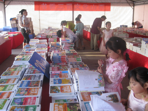 書展現(xiàn)場為240平方米的帳篷房,中外經(jīng)典名著、歷史、藝術(shù)、科學(xué)、生活、少兒類書籍琳瑯滿目,約有六、七千冊。所有圖書均可免費閱讀;學(xué)生、教師、軍人等重點群體可憑相關(guān)證件享受優(yōu)惠購書。舉辦方竭力豐富圖書品種、提升圖書品質(zhì),多展出群眾買得起、看得懂、用得上的圖書,確保以充足的資源、優(yōu)惠的價格、優(yōu)質(zhì)的服務(wù)向廣大群眾提供優(yōu)秀出版物。雨過天晴,前來閱讀、購買的男女老幼絡(luò)繹不絕。