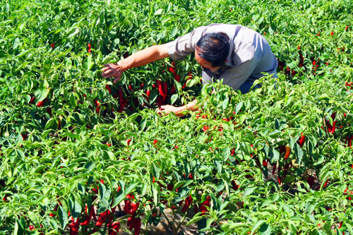 9月1日,原平市南灘村農(nóng)民武金雙正在管理種植的北京紅辣椒。該村調(diào)整產(chǎn)業(yè)結(jié)構(gòu),由原來種植玉米地,如今引進(jìn)種植了新品種北京紅辣椒長勢喜人,又是一個(gè)豐產(chǎn)年,促進(jìn)了農(nóng)業(yè)增產(chǎn),農(nóng)民增收,他們?nèi)缃竦纳罹拖窦t辣椒一樣過的紅紅火火。(趙春曉 攝)