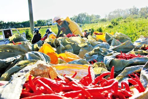 9月6日,原平市南灘種植合作社正組織農(nóng)村閑散勞動力收獲辣椒,實施計件工資制。原平市種養(yǎng)合作積極為農(nóng)民就業(yè)搭建平臺,不僅解決農(nóng)村閑散勞動力的就業(yè)問題,而且通過長期的勞動經(jīng)驗積累,培養(yǎng)了一技之長的農(nóng)民工,成為種養(yǎng)技能型人才。(吉建平 攝)