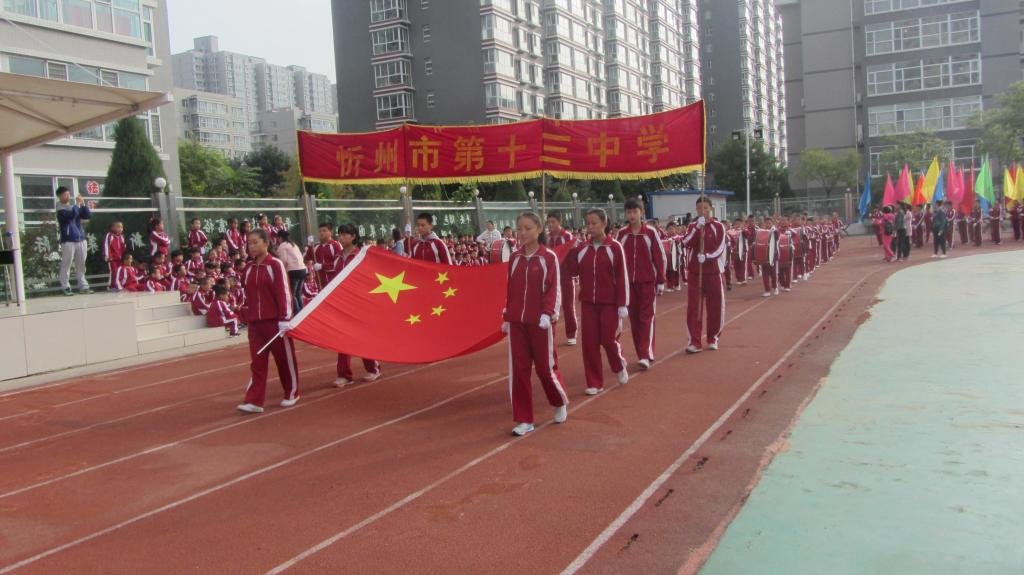 沐浴著秋天的朝陽,享受著清爽的秋風(fēng)。9月28日上午,忻州市第十三中學(xué)第十一屆秋季運(yùn)動(dòng)會(huì)開幕式在學(xué)校操場隆重舉行。伴隨著激昂的運(yùn)動(dòng)員進(jìn)行曲,國旗隊(duì)、鼓樂隊(duì)、彩旗隊(duì)、裁判員代表和運(yùn)動(dòng)員方隊(duì)秩序井然而又氣勢(shì)磅礴地走入會(huì)場。在莊嚴(yán)的國歌聲中,全體師生凝神肅立,齊唱國歌。鮮艷的五星紅旗在操場上冉冉升起。