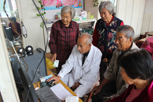 來到北義井村衛(wèi)生所,不足20平米的診療室里已經(jīng)站滿了患者。醫(yī)師張喜旺向高血壓病人李梅蘭詢問病情后又為其測量了血壓。緊接著,他打開區(qū)域衛(wèi)生信息管理平臺,拿著農(nóng)村合作醫(yī)療卡在刷卡機上一刷,信息就自動提取到平臺,張喜旺結(jié)合病人病情開了電子門診處方并下藥,費用直接從農(nóng)合醫(yī)療卡中扣除,整個過程不到十分鐘。張喜旺說,村民們大都都是奔著診療方便和藥品范圍內(nèi)免費而來,這也大大緩解了村民看病難的問題。