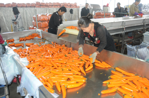 豐收季節(jié),耀入眼簾的是一顆顆閃著金黃燦爛光芒的優(yōu)質(zhì)胡蘿卜,經(jīng)過流水作業(yè)清洗,由員工的巧手整理包裝入袋,經(jīng)包裝運(yùn)往江蘇等地,帶動(dòng)周邊地區(qū)近3000農(nóng)戶受益。圖為綠源亨通視頻有限公司胡蘿卜流水作業(yè)生產(chǎn)線。(喬偉 侯曉敏)