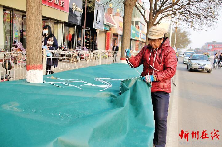 11月20日,原平市前進(jìn)大街的一群工作人員正在飛針走線(xiàn),為街道兩旁的綠化帶縫棉被,助它們溫暖過(guò)冬。原平市加大城市綠化的同時(shí),采取多種措施保護(hù)綠色,分配包干,責(zé)任到人,責(zé)成專(zhuān)人進(jìn)行修剪、澆水,對(duì)越冬的綠化帶全部覆蓋防寒專(zhuān)用布,既美化了越冬綠化帶,又保護(hù)綠化帶不被損傷。(吉建平 攝)