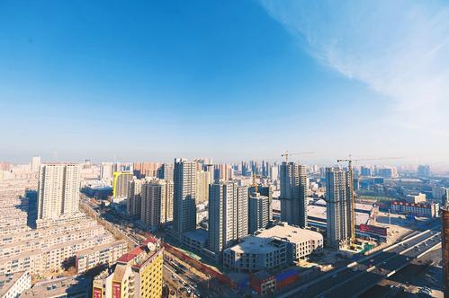 1月9日,太原市空氣AQI指數(shù)81,市民迎來了一個(gè)干凈透亮的二級(jí)天。圖為蔚藍(lán)天空下省城南內(nèi)環(huán)西街附近景色。(本報(bào)記者 阮洋 攝)