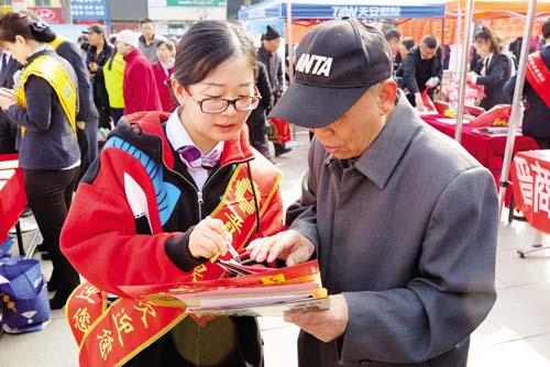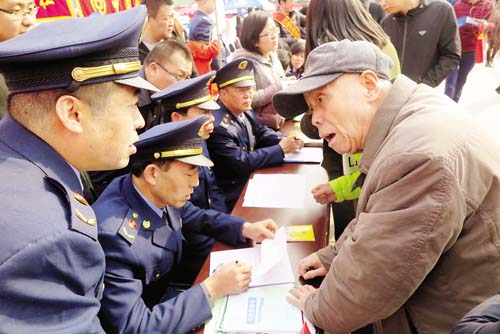 3月15日,忻州城區(qū)體育廣場(chǎng)上以“網(wǎng)絡(luò)誠(chéng)信消費(fèi)無憂”為主題的3·15國(guó)際消費(fèi)者權(quán)益日宣傳活動(dòng)火熱進(jìn)行?;顒?dòng)現(xiàn)場(chǎng),各部門和企業(yè)通過發(fā)放宣傳資料、設(shè)立咨詢臺(tái)、現(xiàn)場(chǎng)受理群眾投訴舉報(bào)、提供服務(wù)等方式,宣傳《消費(fèi)者權(quán)益保護(hù)法》、《反不正當(dāng)競(jìng)爭(zhēng)法》、《無照經(jīng)營(yíng)查處辦法》等法律法規(guī)以及食品藥品安全、識(shí)假辨假等各類知識(shí),吸引了眾多群眾積極參與。受理投訴臺(tái)前,陸續(xù)有消費(fèi)者前來投訴,且有不少年輕人,所反映的問題既有涉及家具、汽車等金額較大的線下消費(fèi)活動(dòng),也有通過電商平臺(tái)進(jìn)行的線上交易。市工商局、消費(fèi)者協(xié)會(huì)的工作人員將消費(fèi)者投訴的問題一一記錄在冊(cè),并表示會(huì)盡快調(diào)查處理。本版圖片攝影 魯明強(qiáng) 王 菲