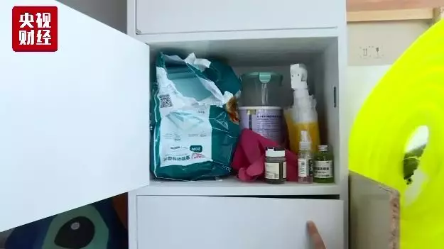 從玩具,到罐頭,再到保健品,以及狗生病的藥,甚至狗的牽引繩都有近20根。細算之下,這一整柜寵物用品價格逼近4000元。