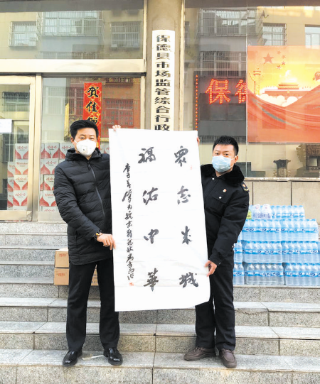 近期新冠肺炎疫情牽動(dòng)著全國人民的心。遠(yuǎn)在他鄉(xiāng)的保德籍中國著名書法家韓雄平先生也時(shí)刻牽掛著家鄉(xiāng)一線抗疫工作人員。他特意委托他的弟弟韓旭平于2月9日將“眾志成城,福佑中華”書法作品及慰問品送給奮戰(zhàn)在抗疫一線的工作人員。 本報(bào)通訊員 攝影報(bào)道