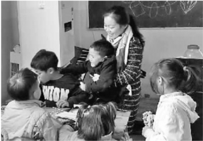 余婷與孩子們快樂地做游戲。