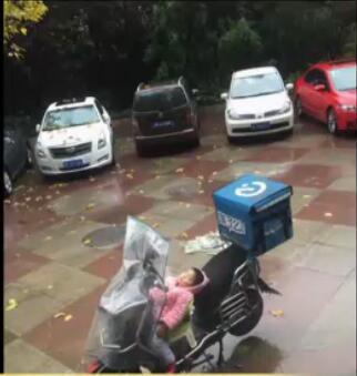 東方網(wǎng)12月30日消息:前兩天上海又是下雨又是降溫,有網(wǎng)友就拍到了這樣一張照片,讓很多人看到了心里很不是滋味。大屏幕上的這張照片當(dāng)中我們能看到有一名3歲的小女孩仰面躺在一輛送外賣的電動車上,也許是累了,即便是下著雨也是睡得很香甜。她為什么會獨自一人睡在外賣車上,她的父母又在哪里呢。