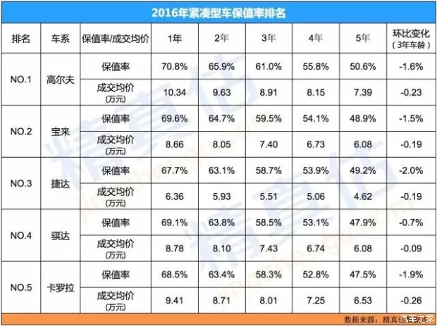 2016年度二手車保值率推薦車型(精真估) 前言:隨著中國汽車產(chǎn)業(yè)的不斷發(fā)展,競(jìng)爭(zhēng)日益激烈,而汽車品牌之間,經(jīng)銷商之間的“價(jià)格戰(zhàn)”“促銷拳”層出不窮。此外政府有關(guān)汽車使用政策越來越嚴(yán)格,購買限制、優(yōu)惠減少、使用限制、強(qiáng)制報(bào)廢等等,諸多因素造成了我們消費(fèi)者購買車輛后在使用期間的貶值越來越明顯,折舊率越來越高,保值率相對(duì)越來越低,用三年“賠一半”的車型比比皆是,這還不算其中的使用成本。所以在汽車品牌、外觀、性能、技術(shù)逐漸趨同的新形勢(shì)下,如何選擇一款保值率高,使用經(jīng)濟(jì)性好的車輛成為越來越成熟和專業(yè)的汽車消費(fèi)者參考因素,2016年度二手車保值率推薦車型為您呈現(xiàn)選車精華。