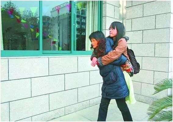 6歲那年,一場車禍奪走了葉沈俏的雙腿。依靠著母親的背和輪椅,她從鄉(xiāng)村小學一路考進浙江大學。村里有人私下議論:“這孩子這輩子完了!”葉沈俏的父母卻不這么認為?!拔覌寢層幸粋€非常明確的信念:我的女兒一定要受教育,一定要讀書?!痹谀赣H的陪護下,葉沈俏從村里的小學讀起,開始了和同齡人一樣的學習節(jié)奏。圖為葉沈俏的媽媽背著她去上課。