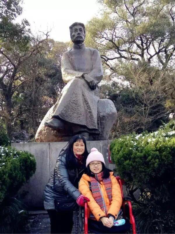 高考時,葉沈俏以全省名次靠前的優(yōu)異成績,被浙江大學錄取。如愿被浙大錄取后,那年初秋,葉媽媽就開始背著葉沈俏穿梭在浙大紫金港校區(qū)各個教室上課?!拔覌寢屖俏业囊粋€勇敢的榜樣,身體力行地告訴我,我可以依靠自己的努力做一個獨立有價值的人。”葉沈俏說。2010年的一次期末考試后,天空正在下雪,越來越大,別的同學早已急匆匆地考完試回家。地滑路濕,葉媽媽便穿上雨衣推著輪椅慢慢走在浙大校園里。葉沈俏說:“那一刻我覺得自己是最幸福的人,我不能放棄,而要更加努力?!眻D為葉沈俏本科畢業(yè)時與母親的合照。