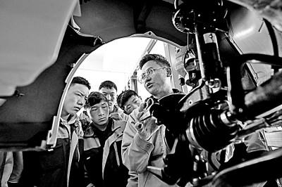 9月8日,在青海省果洛藏族自治州職業(yè)技術(shù)學校,汽車運用與維修專業(yè)學生在實訓課程上學習。 新華社發(fā)