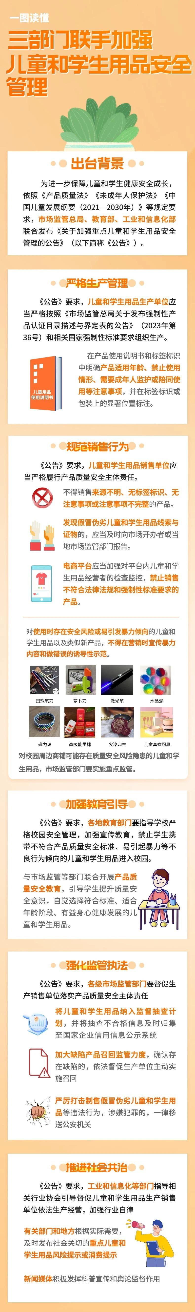 近日 市場監(jiān)管總局、教育部和 工業(yè)和信息化部 就加強重點兒童和學(xué)生用品 安全管理有關(guān)事項發(fā)布公告 禁止學(xué)生攜帶 不符合產(chǎn)品質(zhì)量安全標(biāo)準(zhǔn) 易引起暴力等不良行為傾向的 兒童和學(xué)生用品進入校園