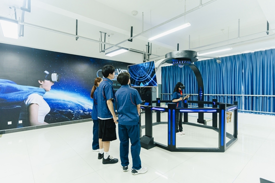 西安航空職業(yè)技術(shù)學院學生正在進行VR畫面體驗測試。學校供圖