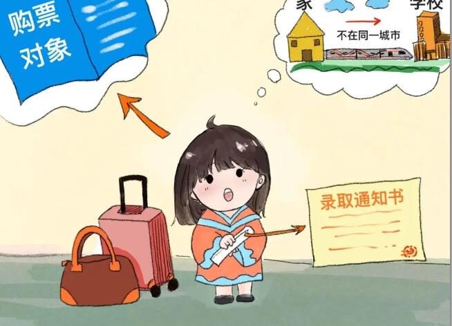 購票對象 新生必須在全日制高等學(xué)校(含國務(wù)院教育行政部門、省級人民政府審批設(shè)置的實(shí)施高等學(xué)歷教育的民辦學(xué)校),承擔(dān)研究生教育任務(wù)的科學(xué)研究機(jī)構(gòu),軍事院校,普通中、小學(xué)和中等職業(yè)學(xué)校(含有實(shí)施學(xué)歷教育資格的公辦及民辦中等專業(yè)學(xué)校、職業(yè)高中、技工學(xué)校),國務(wù)院或國務(wù)院宗教事務(wù)局批準(zhǔn)的正式宗教院校就讀的學(xué)生、研究生。 異地求學(xué) 家庭居住地和學(xué)校所在地不在同一城市。 相符證件 新生憑學(xué)校錄取通知書購買學(xué)生優(yōu)惠票。 相符區(qū)間 錄取通知書只能使用一次,可購買家庭至院校所在地之間的單程學(xué)生票。 購票攻略