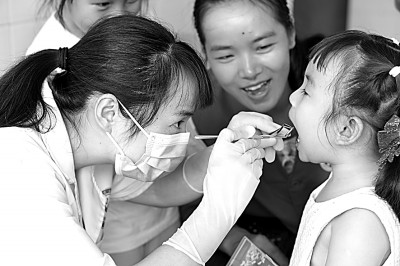 江西豐城同田鄉(xiāng)組織兒童牙齒矯正檢查。張小員攝/光明圖片