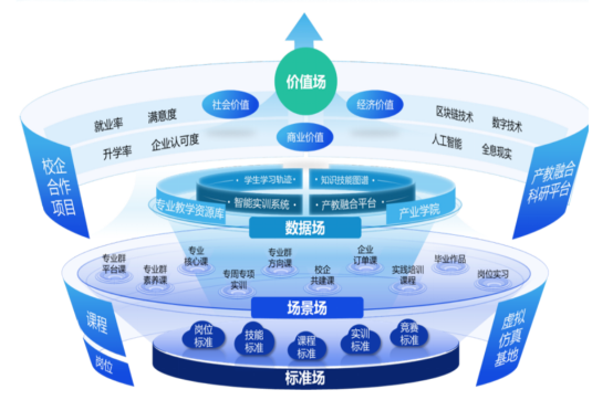 學(xué)院商數(shù)專業(yè)群將“共生”理念融入職教實踐,提出“四象場域共生”育人模型,構(gòu)建“標(biāo)準(zhǔn)場—場景場—數(shù)據(jù)場—價值場”四維聯(lián)動機制:
