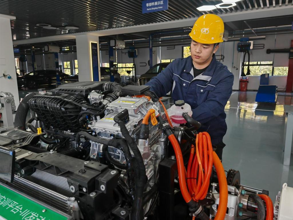 為支撐新能源汽車(chē)產(chǎn)業(yè)崛起,河南省全省高職院校開(kāi)設(shè)相關(guān)專(zhuān)業(yè)點(diǎn)419個(gè),相關(guān)在校生22.14萬(wàn)人。在河南機(jī)電職業(yè)學(xué)院與比亞迪共建的現(xiàn)場(chǎng)工程師學(xué)院,圍繞“現(xiàn)場(chǎng)工程師”培養(yǎng)開(kāi)發(fā)了37門(mén)項(xiàng)目化課程。該校每年向鄭州航空港區(qū)比亞迪工廠輸送1000余名技能人才,不少學(xué)生迅速成長(zhǎng)為產(chǎn)線骨干?!皩W(xué)校通過(guò)‘項(xiàng)目+人才’雙交付育人模式,極大地增強(qiáng)了人才培養(yǎng)與企業(yè)需求的匹配度。”比亞迪總裝車(chē)間主任如是說(shuō)。