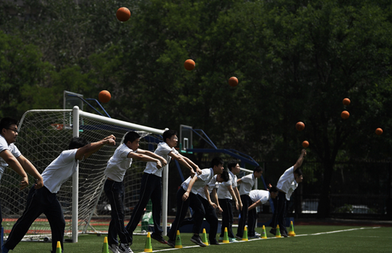 5月28日,北京,第十八中學(xué)學(xué)生備考中考體育考試。視覺中國(guó)供圖