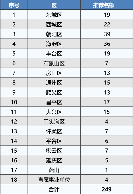 2020年北京市特級(jí)教師推薦名額分配表↓↓