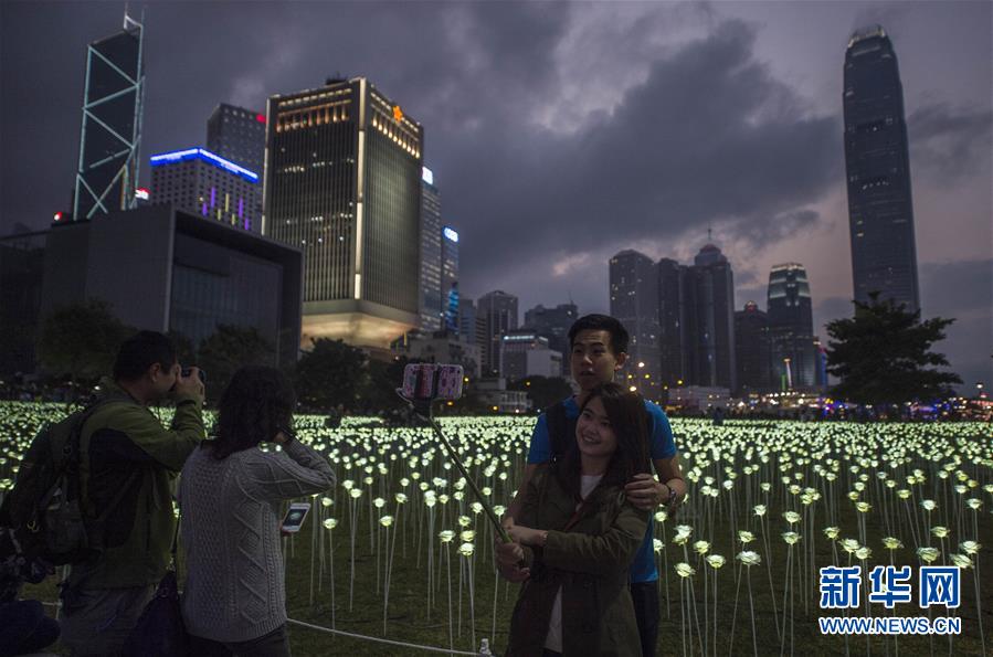 2月13日,市民在參觀玫瑰花燈。 當(dāng)日,來自韓國首爾的LED Rose Garden大型公共展覽亮相香港。25000朵LED白玫瑰花燈在中環(huán)海濱展出,在情人節(jié)即將到來之際點(diǎn)亮維港,營造出浪漫甜蜜的氛圍。新華社記者 呂小煒 攝