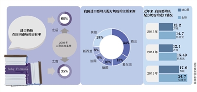 今年2月,中國海關(guān)發(fā)布的數(shù)據(jù)顯示,2015年我國進(jìn)口嬰幼兒配方奶粉達(dá)到17.6萬噸,較2014年的12.1萬噸增加5.5萬噸,同比增長45%;進(jìn)口嬰幼兒配方奶粉的價值達(dá)到24.7億美元,同比增長59.5%。