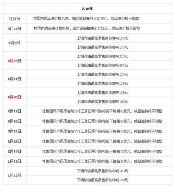 國家發(fā)改委歷次成品油價(jià)格調(diào)整匯總表。來源:隆眾石化網(wǎng)