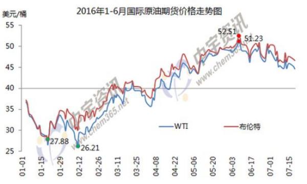 1-6月國際原油期貨價(jià)格走勢圖。來源:中宇資訊。