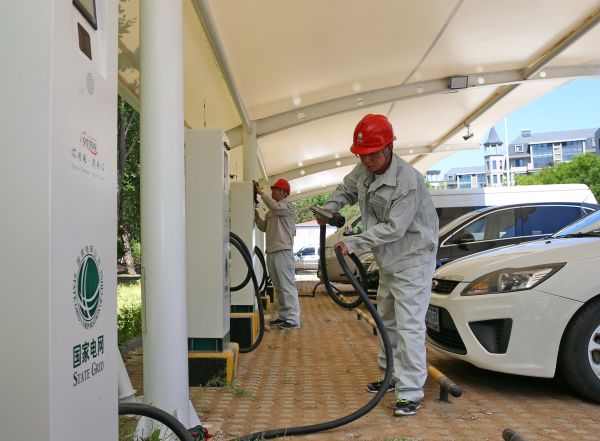 資料圖片:工人在充電站工作。 新華社記者楊世堯攝