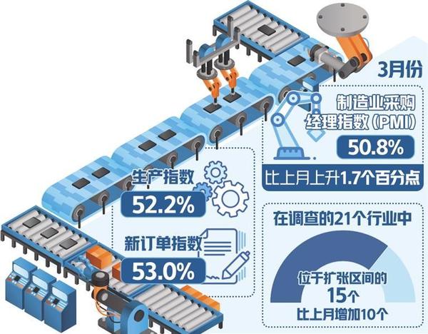 “3月份PMI指數(shù)大幅回升,且重回榮枯線之上,既有季節(jié)性因素影響,也表明經濟回升向好態(tài)勢進一步明確。”國務院發(fā)展研究中心研究員張立群表示。